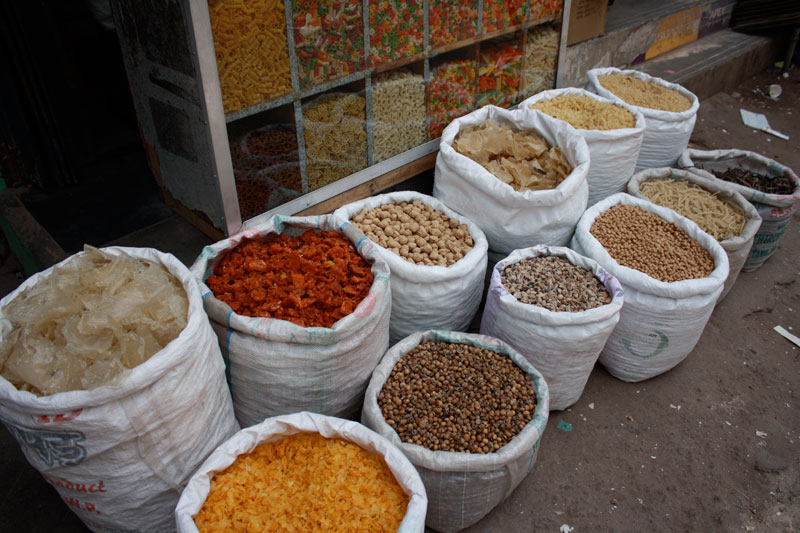 ![]() Dried food and pasta for sale at the market. |