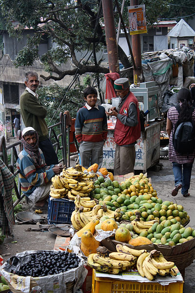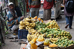 ![]() Bananas, mango and papaya for sale at the market. |